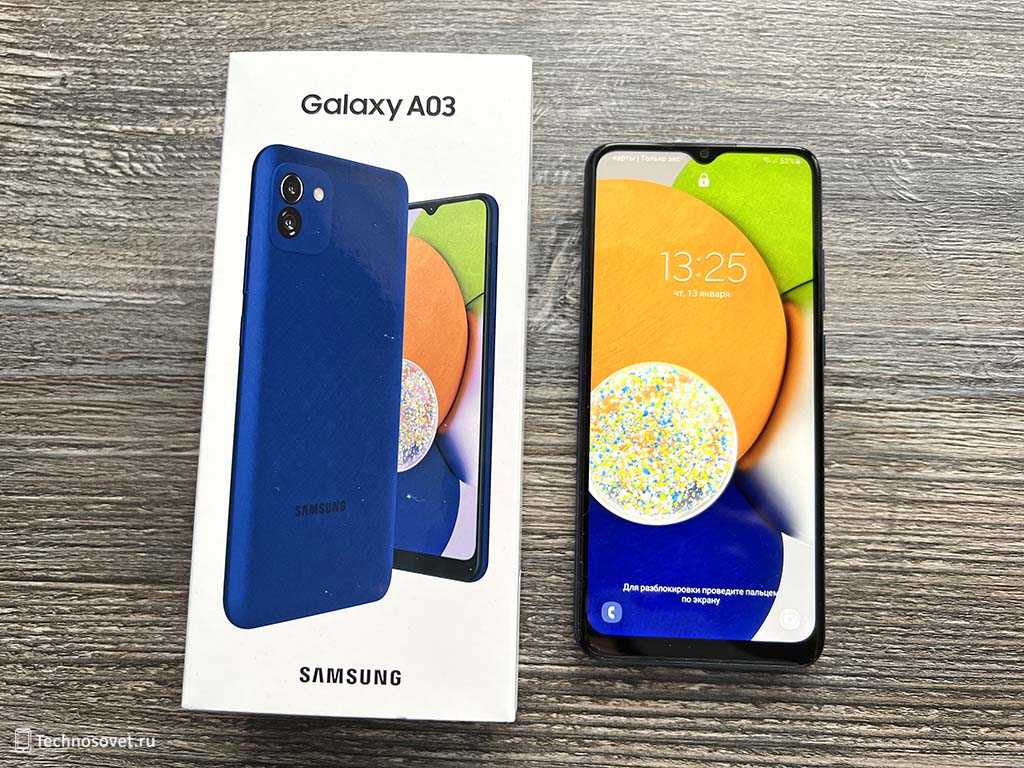 Передняя панель у Galaxy A03 точно такая же, как и у других бюджетных смартфонов компании Samsung. Это три тонкие рамки по периметру, довольно широкая нижняя рамка и каплевидный вырез под фронтальную камеру.