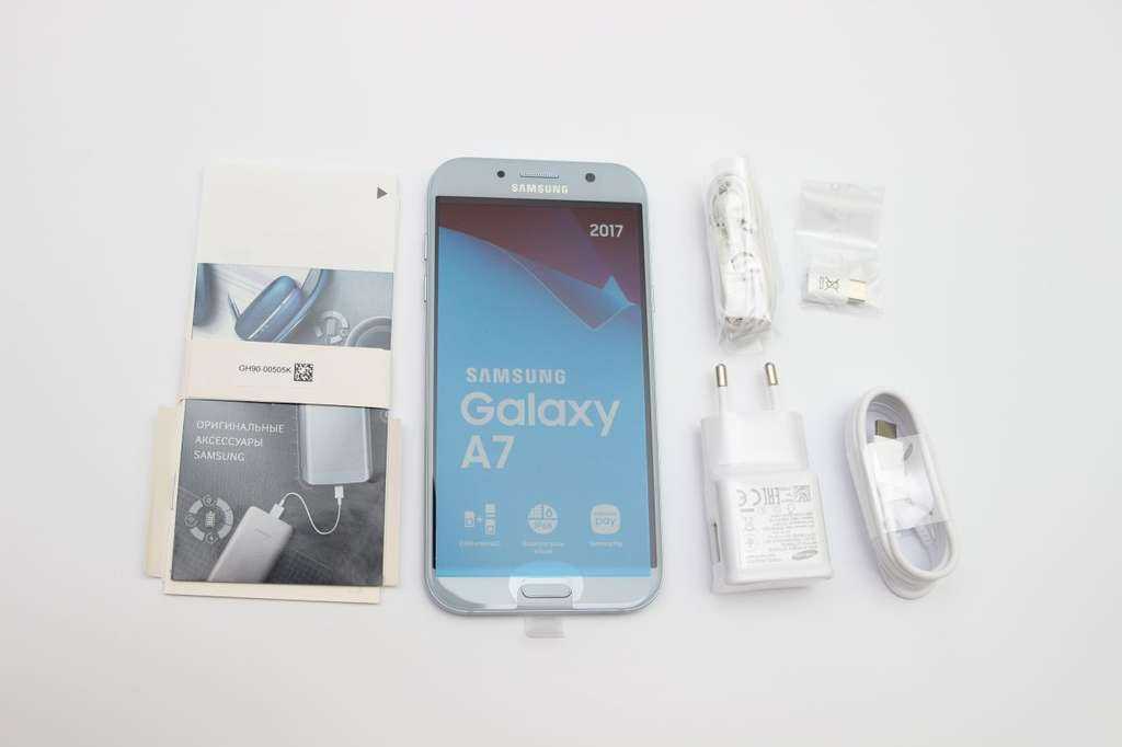 Поставляется Samsung Galaxy A7 (2017), как и одноименный смартфон, что на год младше, в белой картонной коробке.