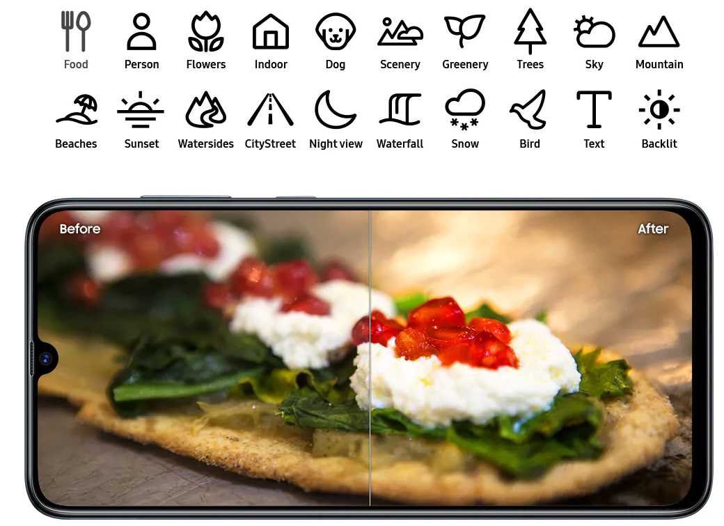 Одним из лучших качеств A70 является его огромный 6,7-дюймовый дисплей с яркой и красочной панелью sAMOLED и разрешением Full HD + (1080 x 2400), обеспечивающий превосходное качество просмотра для телефона среднего класса.