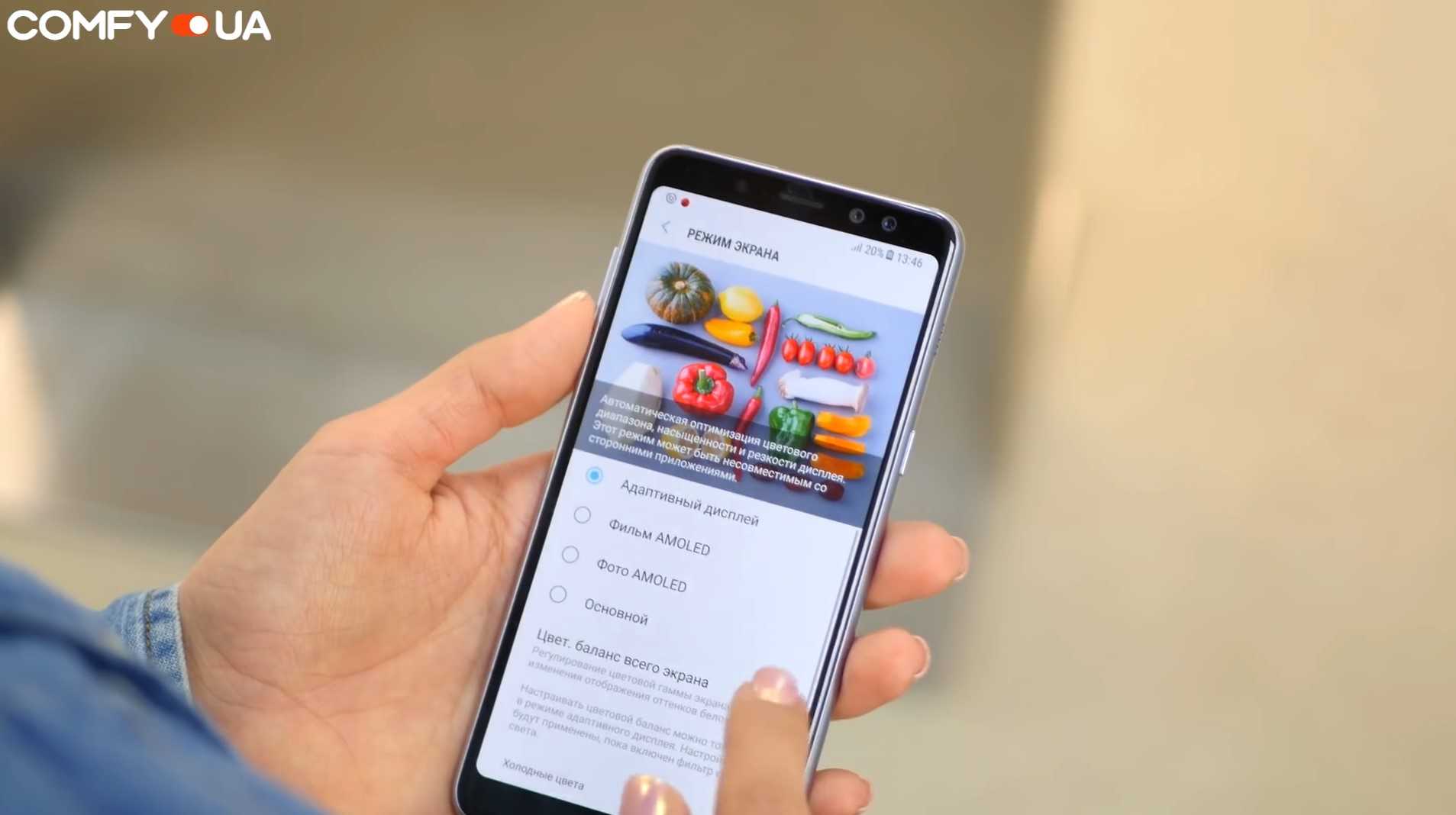 Как и в своих старших братьях в новом Galaxy A8+ экран занимает практически всю площадь передней панели. Разрешение в обоих модификациях составляет 2220 х 1080, что характерно для новомодного соотношения сторон в 18,5:9. Соответственно, экраны у А8 и A8+ отличаются размером и плотностью пикселей на дюйм, что практически незаметно и можно сказать точно – качество на высоте. Это привычный для компании Samsung Super AMOLED – экран, который превосходно справляется со своими задачами.
