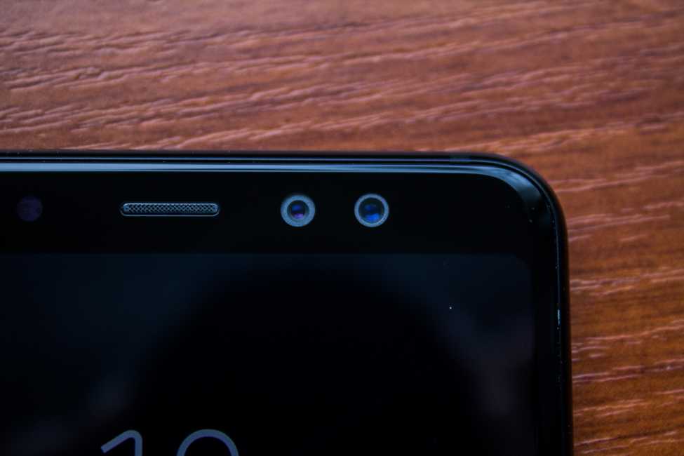 Главный акцент в A8 и А8+ — фронтальная камера. Она имеет сразу два сенсора — 16 Мп и 8 Мп с одинаковой диафрагмой f/1.9. Основной объектив с меньшим углом обзора, но с большим разрешением. Второй модуль – широкоугольный (85 градусов) с худшим качеством. Это позволяет делать на селфи-снимках задний фон размытым (функция «живой фокус»). Во фронтальную камеру встроены опции улучшения фотографий в режиме реального времени. С их помощью корректируются дефекты кожи, глаза становятся ярче. Появляется возможность добавлять смешные маски для селфи – любители публикации автопортретов в соцсетях оценят такой подход.