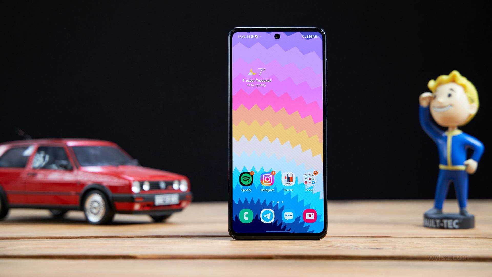 Экран по традиции отличного качества: очень сочный, яркий, с аккуратными небольшими рамками и вырезом под фронтальную камеру по центру. Дисплей с отличным запасом по яркости, Samsung заявляет для телефона 800 нит — это очень хорошо, на улице всё видно даже в солнечную погоду. Кроме того, добавили поддержку 120 Гц — это вообще флагманская фишка, анимация получается очень плавной.