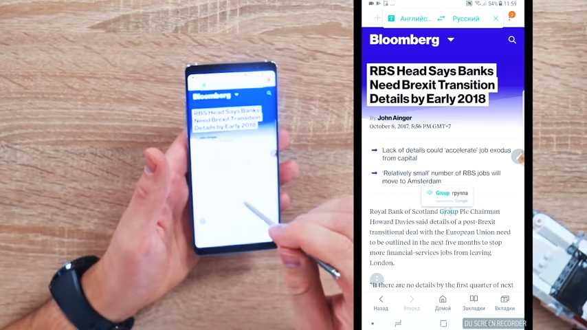 - Здесь можно переводить текст. Это работает следующим образом: вы нажимаете перевод → заходите на любой сайт → и как только вы, даже не касаясь дисплея, наводите стилус на определённое слово → слово тут же переводится.