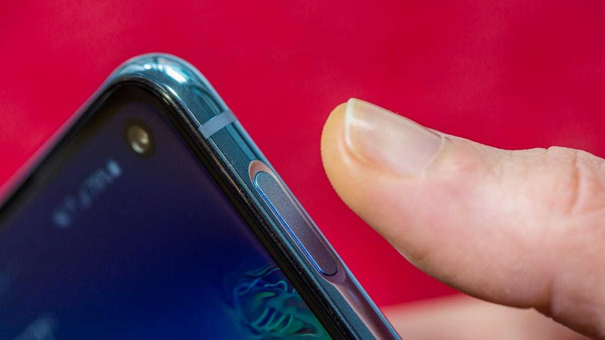 The Galaxy S10E’s fingerprint reader and power button are one.