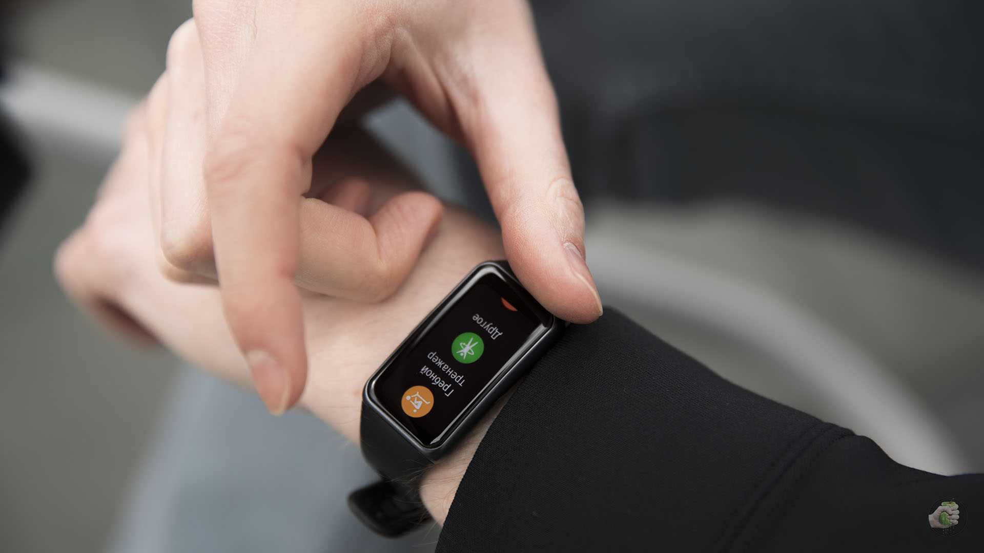 Huawei Band 6 пробуждается не по тапу по экрану, а по нажатию на боковую кнопку. Она тут, кстати, всего одна и возвращает вас на главный экран.