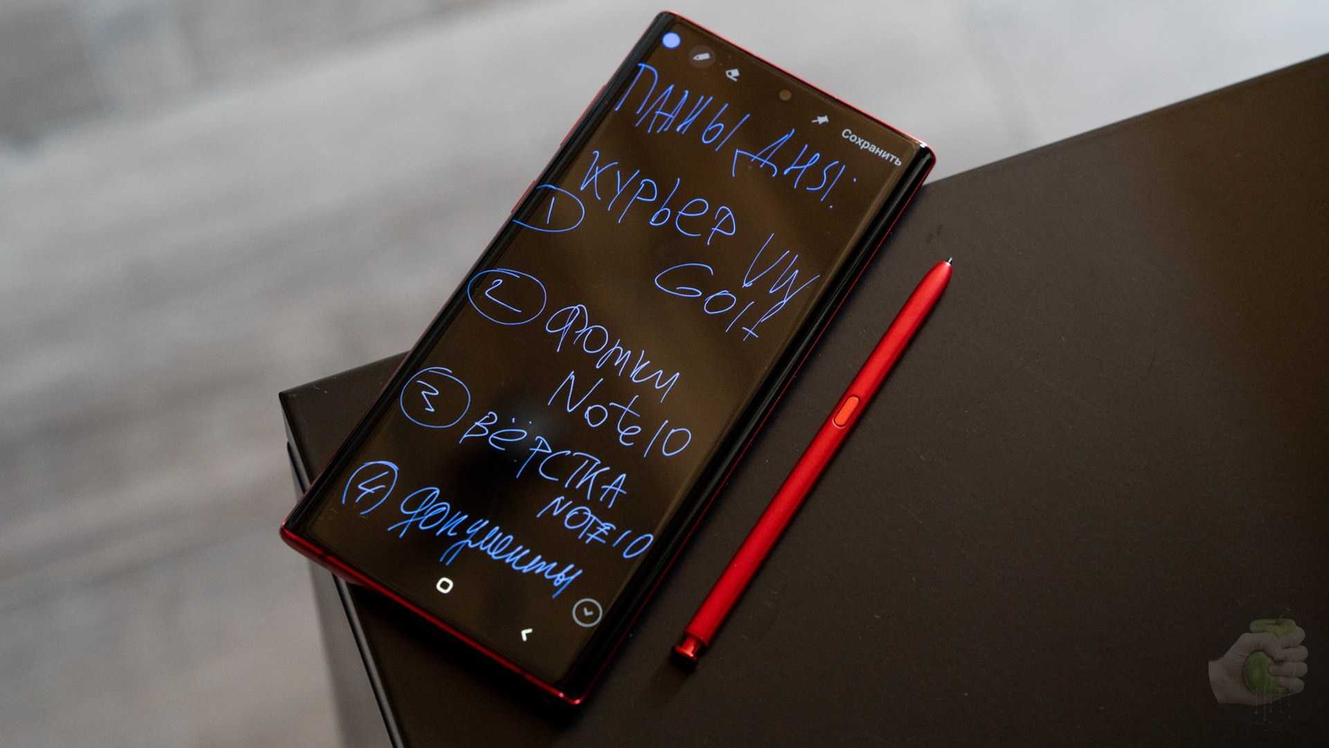 Самое главное в смартфонах семейства Note — фирменный стилус S-Pen. В Note10 стилус стал «умнее» и лучше: работает до 20 часов против 30 минут Note9, умеет управлять смартфоном, защищен от воды.