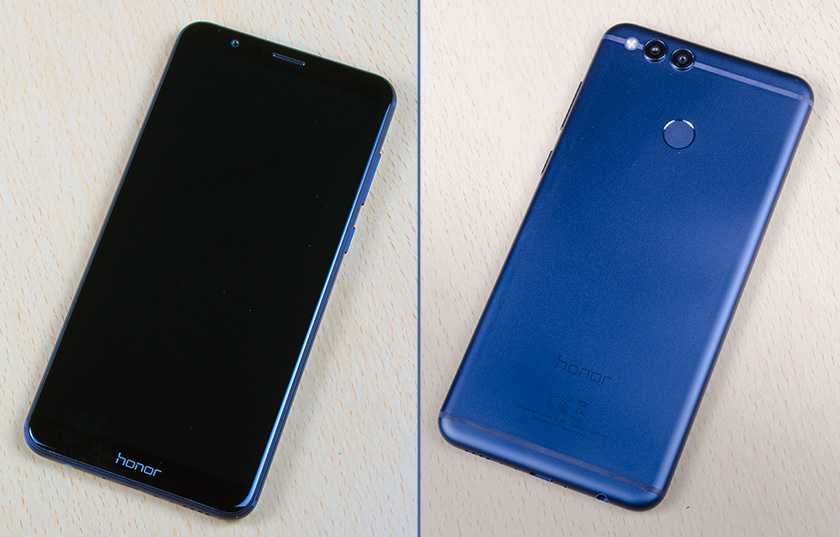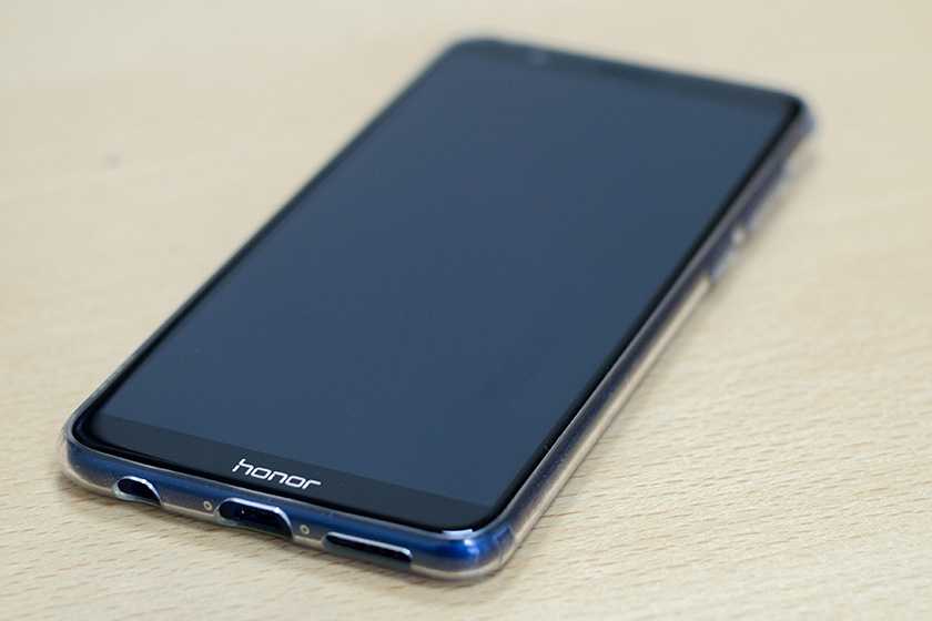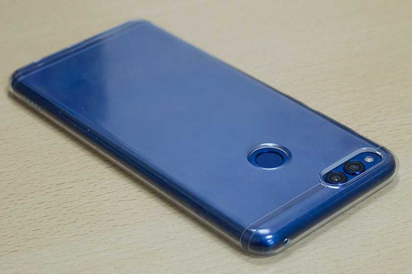 Как и у большинства «безрамочных» мобильных гаджетов, рамки у Honor 7x всё-таки присутствуют, но они тонкие. Поля слева и справа от краев изображения — всего 4 миллиметра. Чехол добавляет еще по миллиметру, зато его края, слегка выступающие над дисплеем, позволяют спокойно класть гаджет «лицом» вниз. Сверху над дисплеем, как ни старайся, все равно нужно немного места для динамика и камеры, а снизу, наверное, можно было бы подобраться к краю на те же 4 мм, но ведь длина корпуса не так критична, как ширина, и лишний сантиметр сверху и снизу никому мешать не будет. Более того, если бы дисплей был вплотную к нижнему краю, то при работе с девайсом одной рукой было бы неудобно тянуться пальцем в самый низ экрана, а ведь как раз-таки там и располагаются часто используемые кнопки навигации.