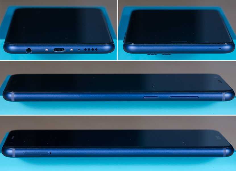 Компоновка корпуса в целом привычная – кнопка питания/блокировки и двойная клавиша громкости на правой стороне, на левой – комбинированный лоток для двух nanoSIM или одной симки и одной карты памяти. За отсутствие модного разъема USB Type-C сейчас принято вовсю регать производителя, но консерваторов порадует наличие старого доброго MicroUSB и аудиоразъема под мини-джек на нижней стороне корпуса. Там же располагается микрофон и монофонический динамик. Ещё один микрофон присутствует на верхнем торце, он используется для шумоподавления при разговоре, а также участвует в записи стереозвука в видео.
