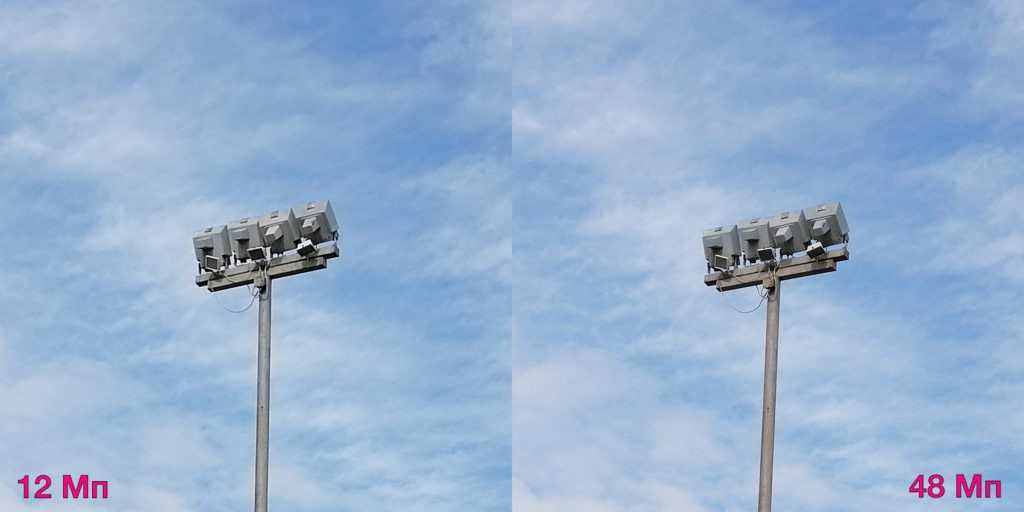 Главная камера по умолчанию снимает в 12 Мп разрешении, однако я рекомендую всегда снимать в нативном режиме 48 Мп («HIGH-RES» в разделе «Ещё») — в таком случае детализации будет на голову выше. Сравните сами кропы из двух фото, сделанных в разных разрешениях.