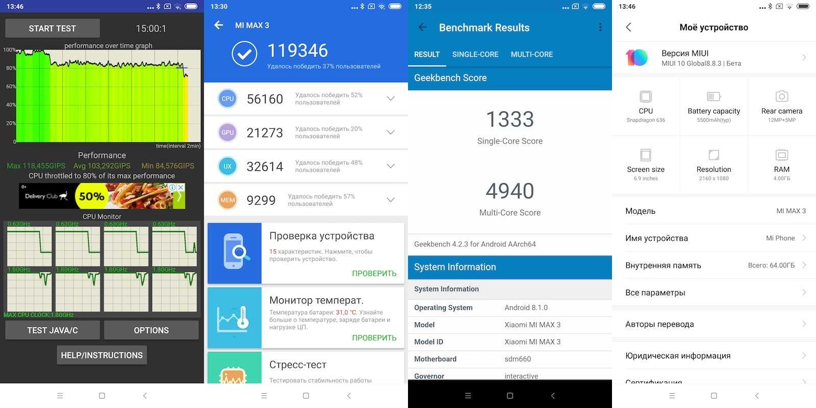 Xiaomi Mi Max 3 поставляется с системой Android 8.1 и оболочкой MIUI 9. Буквально несколько дней назад стало доступно обновление до MIUI 10. MIUI 10 так же выполнена на базе Android 8.1. В основном все тесты в обзоре я делал в MIUI 10 (переделывал заново после выхода обновления), но есть пара, которые я делал в MIUI 9.