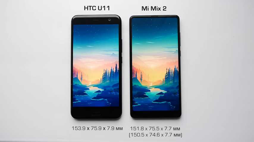 Если сравнивать габариты данного смартфона с другими, то мы можем проследить их на примере MI Mix 2 и HTC U 11 (см. фото ниже)