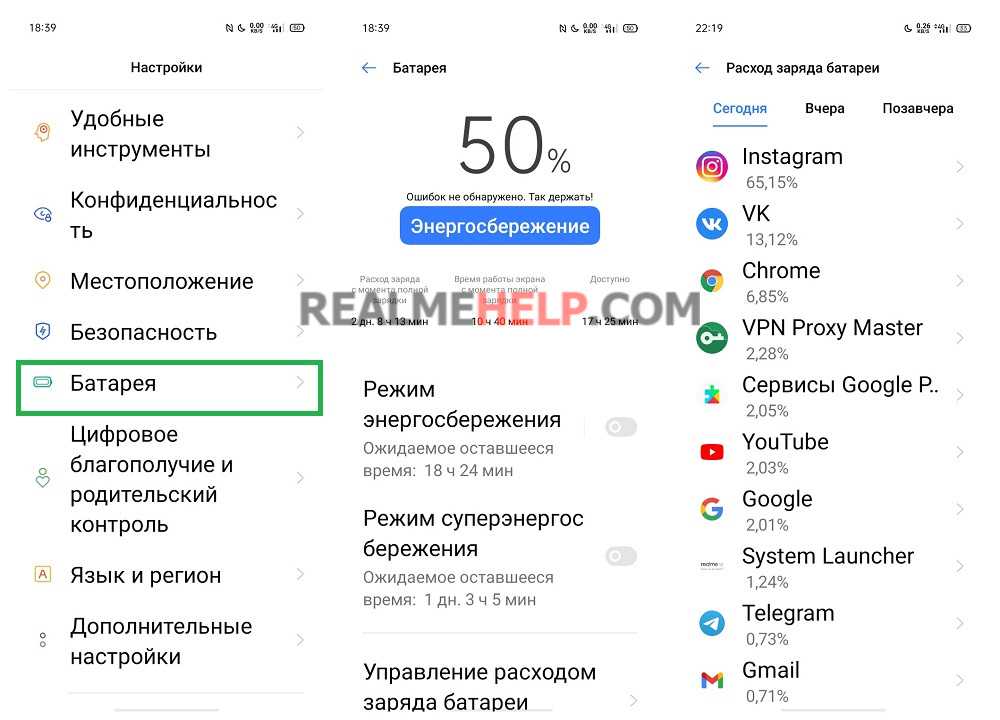 Все современные телефоны Реалми оснащаются литий-полимерными аккумуляторами. Это наилучший вариант для смартфонов, поскольку емкость достигает 5000-6000 мАч, а «память» отсутствует. Батарея весит немного, благодаря чему девайсы получаются легкими и тонкими.