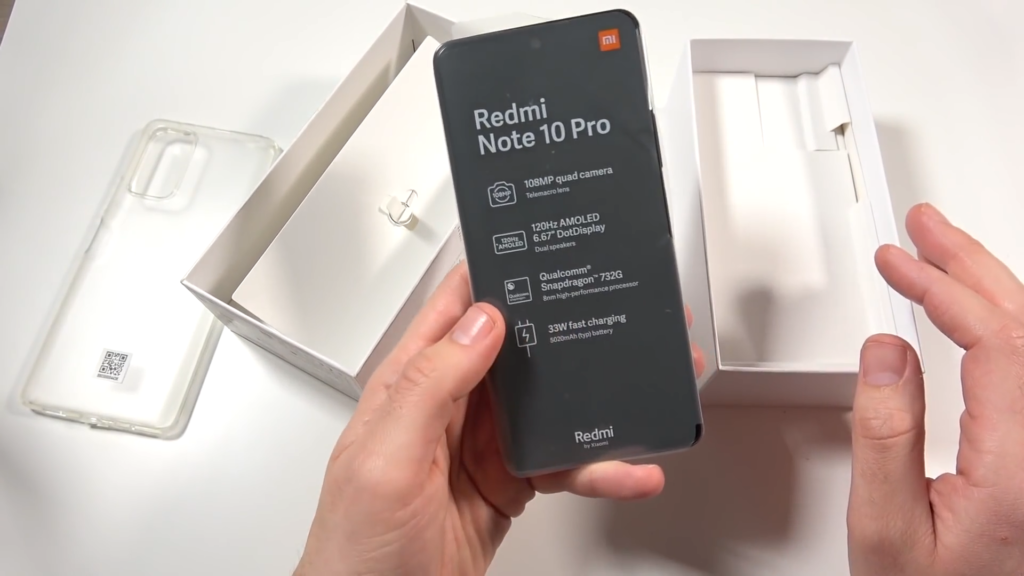 Xiaomi Redmi Note 10 Pro выпускается в трёх расцветках — чёрной, голубой и светло-оранжевой. Нам достался самый скучный вариант, который ещё и глянцевый; остальные расцветки матовые. Кстати, у них в комплекте чехольчик немного другой, он глянцевый. Я бы, конечно, предпочёл вариант с матовой крышкой, но если вы предпочитаете именно чёрные смартфоны — не мне вас переубеждать.