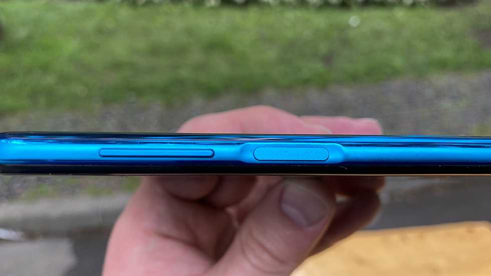 Спереди у нас экран с небольшими рамками (нижняя шире) и небольшое отверстие в левом углу для селфи-камеры. Вверху сюрприз — IRDA или инфракрасный порт, внизу — разъем для наушников 3,5 мм и USB-C. Сканер отпечатков пальцев вынесен на кнопку питания, что очень удобно. В век масок это удобный и быстрый способ защитить данные.