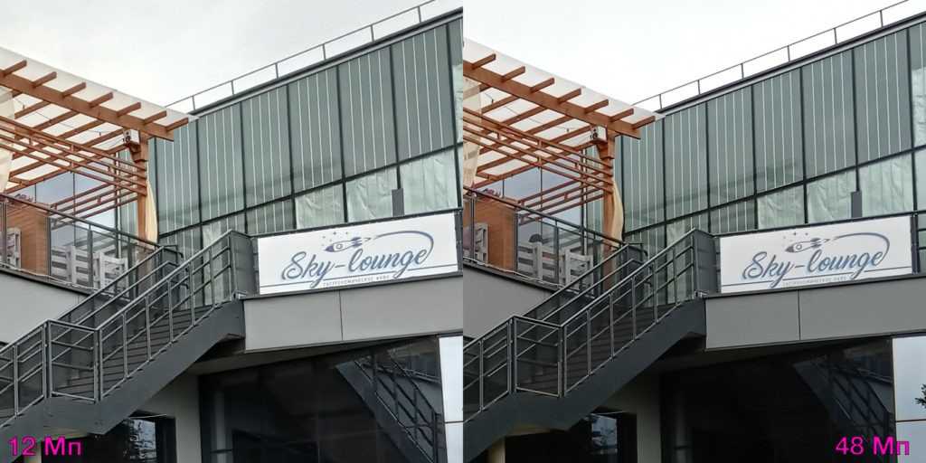 По умолчанию девайс снимает в разрешении 12 Мп. Полные 48 Мп доступны отдельно. К ним прибегать особого смысла нет — картинка чуть резче, но заметно это только при 100-процентном приближении.