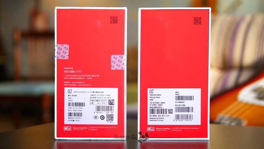 Слева коробка от китайской версии OnePlus 5T, а справа от американца