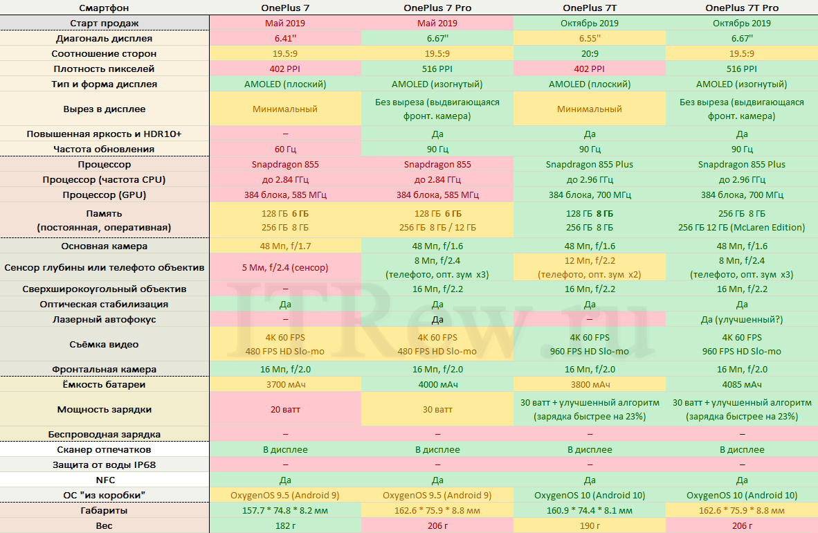 Напоследок, мы подготовили для вас таблицу с детальным и наглядным сравнением всех четырёх смартфонов OnePlus, представленных в этом году: