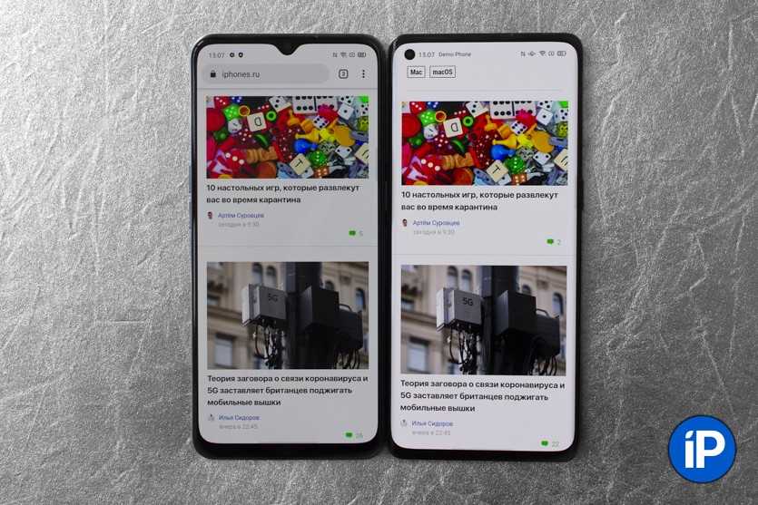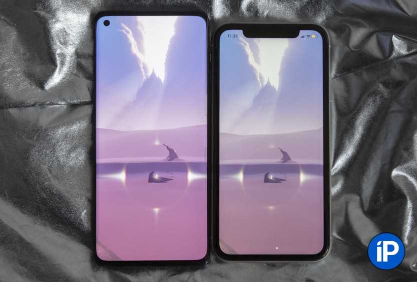 Слева Reno3 Pro, справа iPhone XR. LCD унижен.