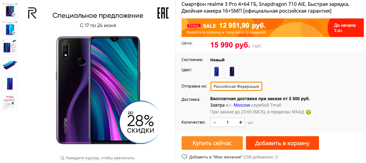 И вот что приятно: с 17 по 24 июня на Tmall этот realme можно будет купить за 12 950 рублей.