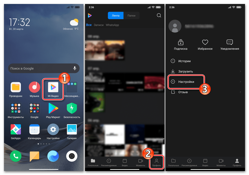 - Откройте Mi Видео, нажмите «Профиль» в расположенной внизу экрана панели разделов приложения, затем на открывшемся экране тапните «Настройки».