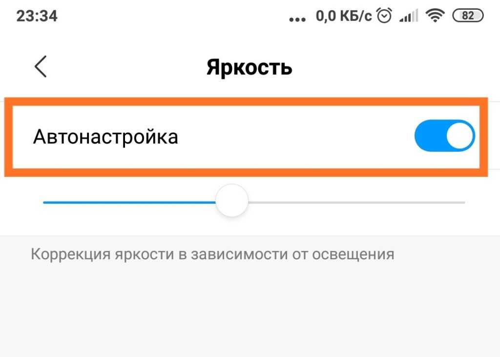 Если модель не оснащена большим аккумулятором, есть способы оптимизировать работу батареи. В первую очередь поставьте автоматическую яркость. Для этого зайдите в “Параметры”—“Экран”—“Яркость”. Сверху есть ползунок “Автонастройки”: передвиньте его, чтобы он стал синим. Теперь смартфон будет регулировать яркость экрана по освещению. Так он будет тратить меньше энергии, снижая мощность подсветки в тёмных помещениях.