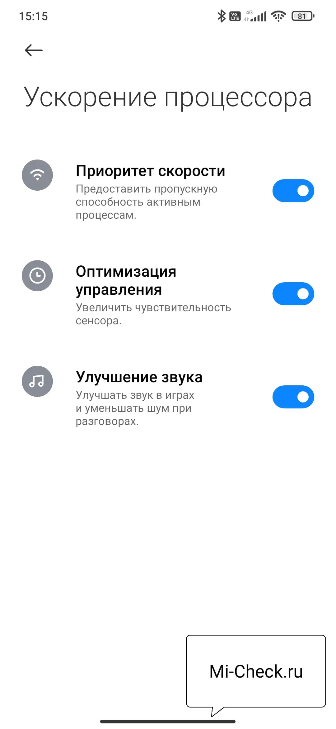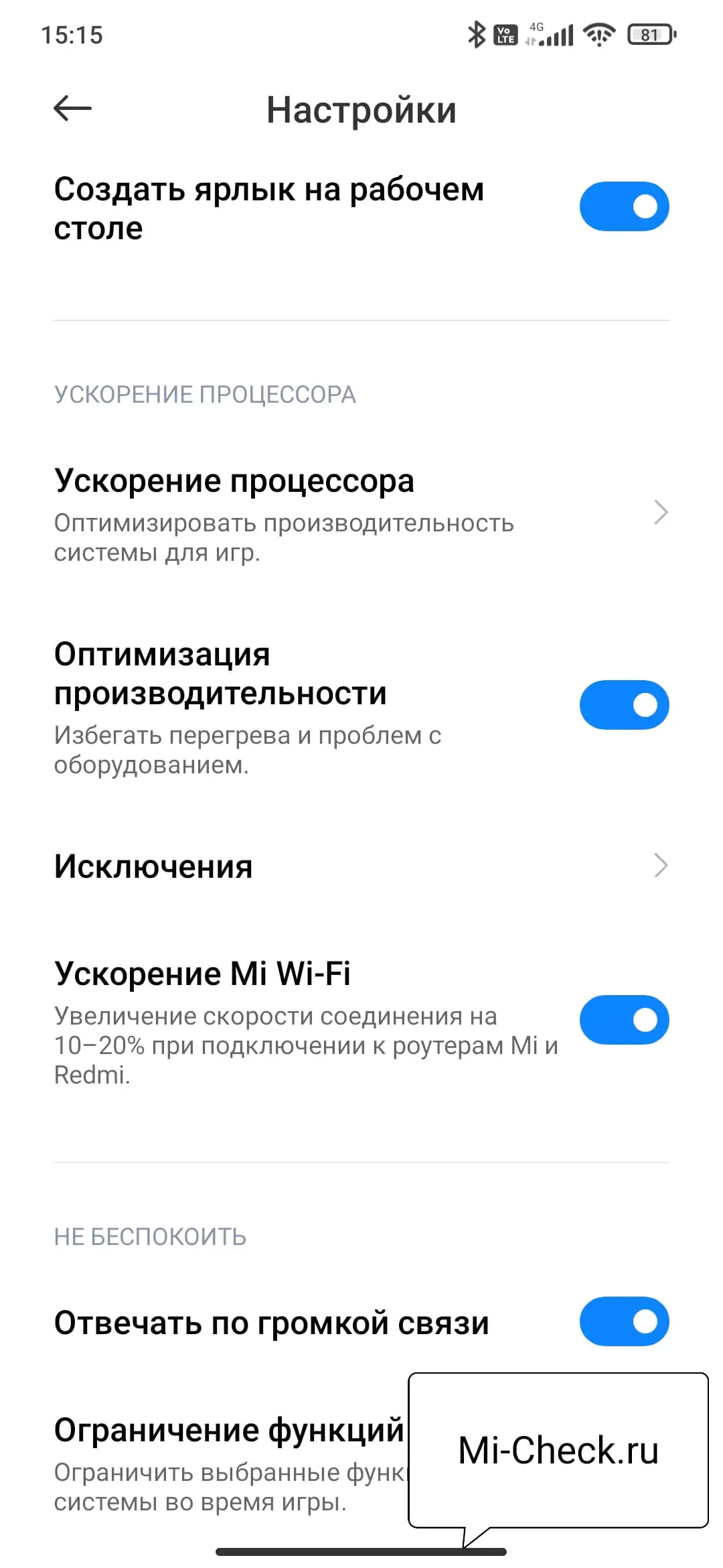 Дополнительным преимуществом Game Turbo Xiaomi является возможность настройки каждой игры. Доступны следующие функции.