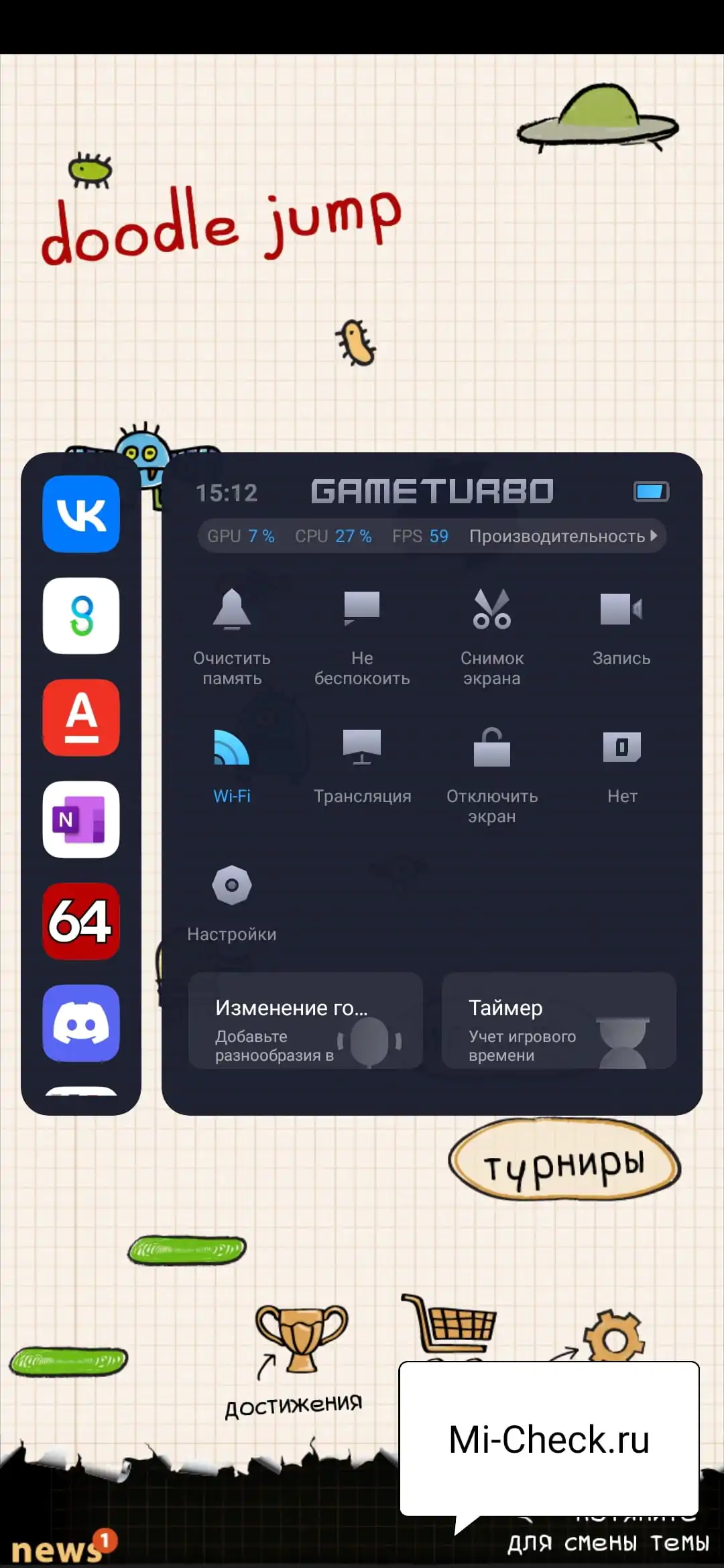 При запуске игры в левом углу экрана появится небольшая серая полоска, свайпнув по которой вы активируете режим. Теперь окажется доступной такая информация, как загруженность чипсета и видеоускорителя, число кадров в секунду. Отличным бонусом является возможность очистки ОЗУ, записи видео с экранного модуля, создания скриншота, отключения всплывающих уведомлений. Также можно активировать либо выключить Wi-Fi либо мобильный интернет, причем игра останется в фоне.