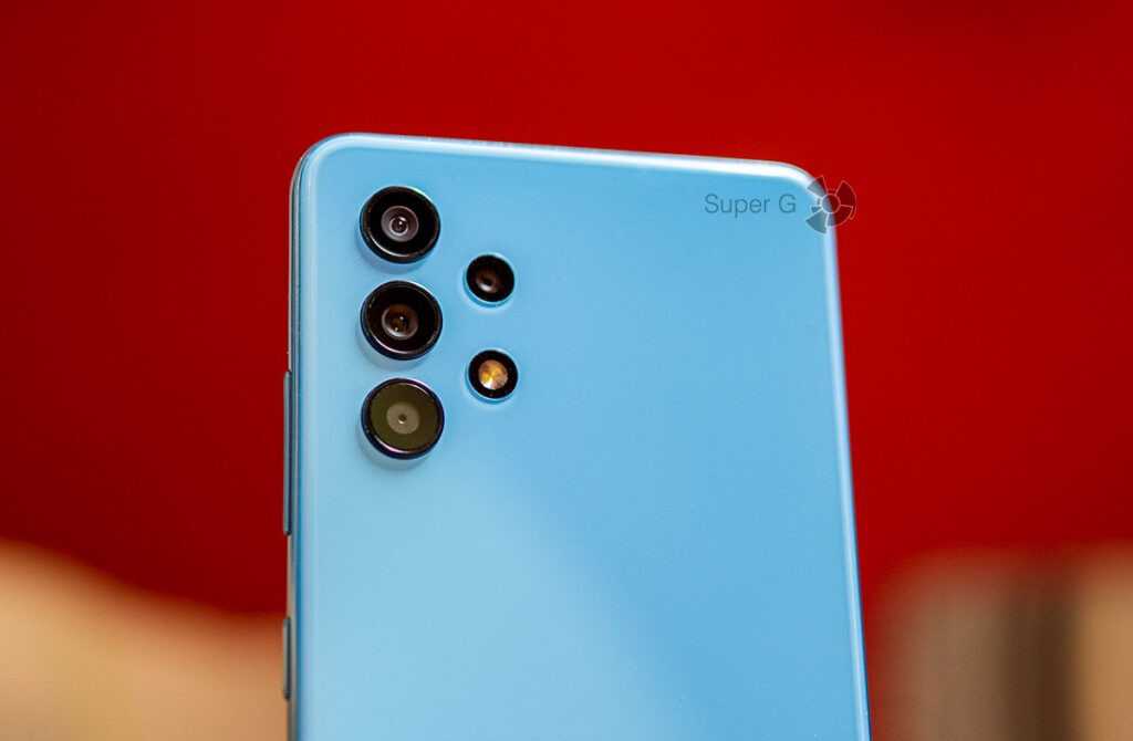 Основные черты в дизайне среднеуровневая серия Galaxy А переняла у флагманской Galaxy S. И лейтмотивом этого года для смартфонов Samsung стал обновленный блок камер. Нельзя сказать, что у Galaxy A32 (как, впрочем, и у остальных смартфонов серии) задняя камера смотрится прям один в один, как у «эсок», но расположение сенсоров идентично. Тройка основных и довольно массивных модулей находятся друг под другом и слегка выступают над корпусом, а более миниатюрные отверстия со вспышкой и вспомогательным сенсором вынесены в сторону. Примечательно, что в A32 блок камер не выделен на корпусе вообще никак – никаких рамочек или выступающей платформы. Ну, хоть лого бренда снизу никуда не делось.