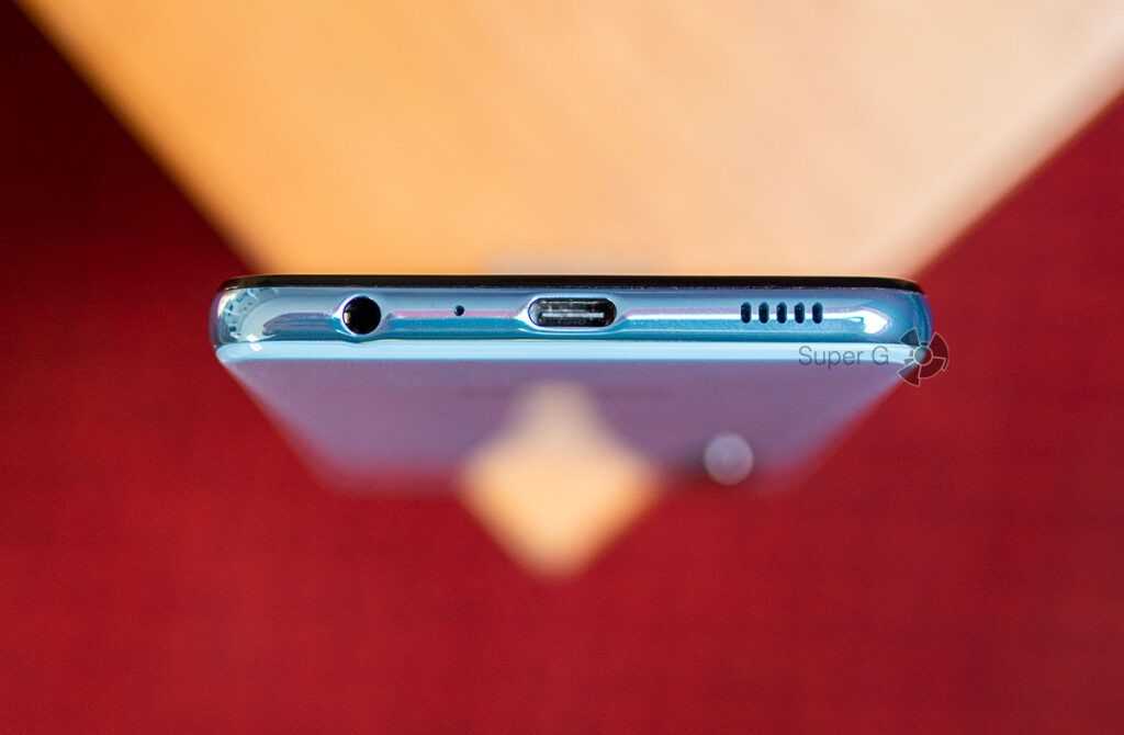 - снизу расположены разъем 3,5мм (для наушников), USB-C (для зарядки или подключения к другим устройствам), динамик и микрофон;