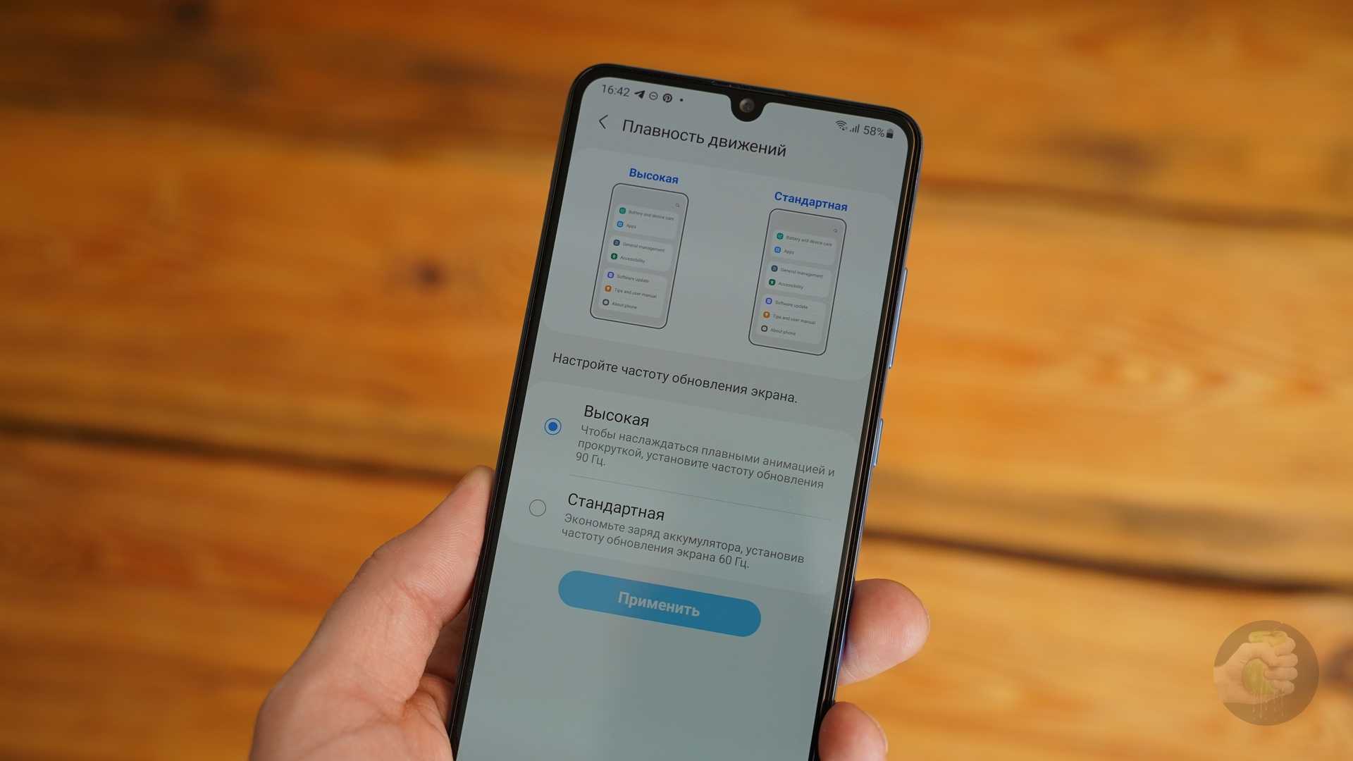 Что же касается частоты обновления, на выбор доступно два режима: Стандартный или Адаптивный. В первом случае частота ограничена значением 60 Гц, когда во втором случае в большинстве сценариев у вас будет 90 Гц. Когда вы не взаимодействуете с дисплеем, частота обновления всегда 60 Гц.