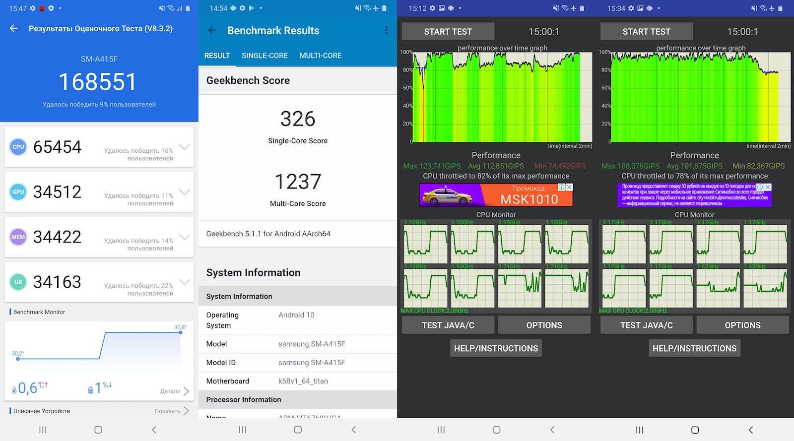 Производительность смартфона Samsung Galaxy A32