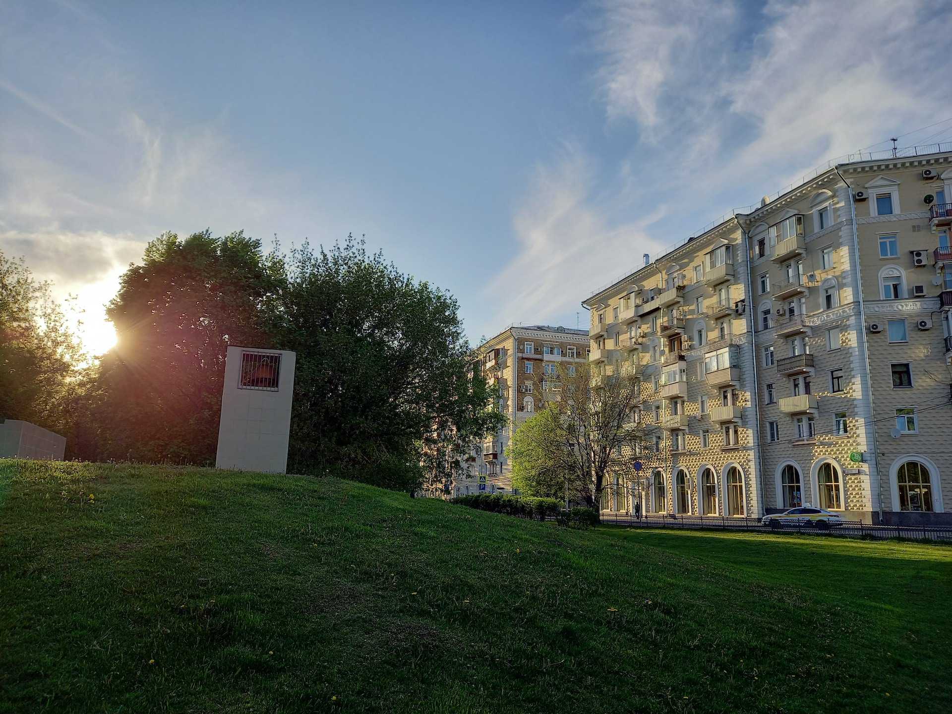 Вечером ситуация меняется, ночного режима тут нет, а при плохой освещённости смартфону приходится туго, вылезают шумы, пропадают детали. Вдобавок телефон старается осветлить кадр, поэтому экспозицию приходится менять вручную, двигая ползунок на экране.
