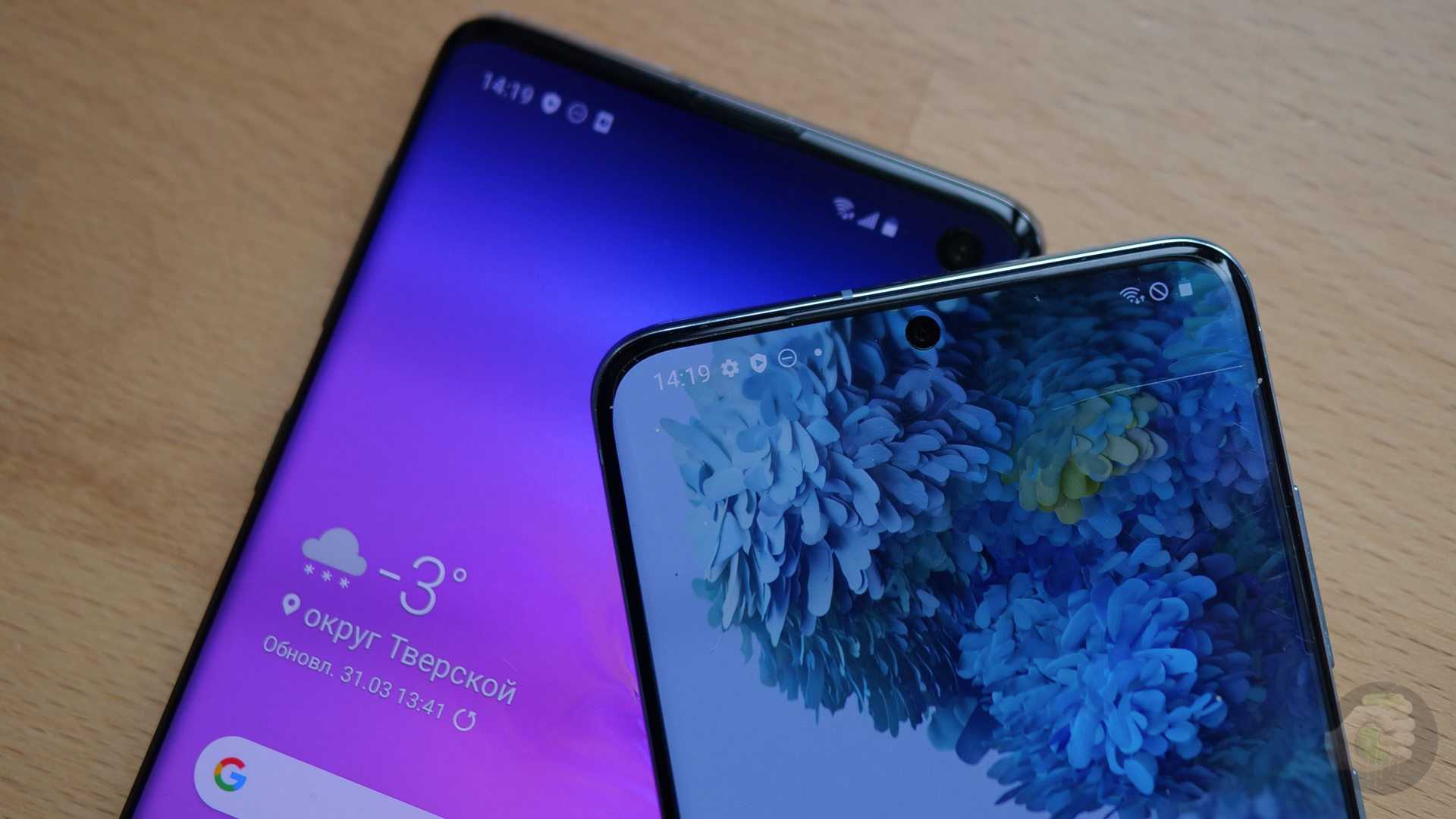 Экран чуть увеличился по сравнению с Galaxy S10: теперь 6,2 дюйма против 6,1 в старой модели. Разница неощутимая, заметить её можно разве что положив один телефон рядом с другим.