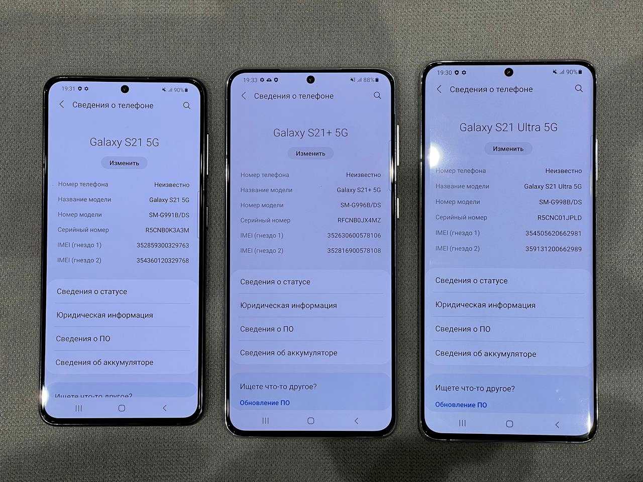 Samsung Galaxy S21, Galaxy S21+ и Galaxy S21 Ultra