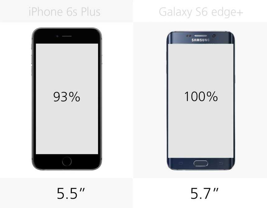 Galaxy S6 edge+ может похвастаться 5,7-дюймовым дисплеем, разрешение которого составляет 1440х2560 пикселей. В отличие от «яблочного» ЖК-дисплея, особенностью южнокорейского гаджета является новейший SuperAMOLED-дисплей.