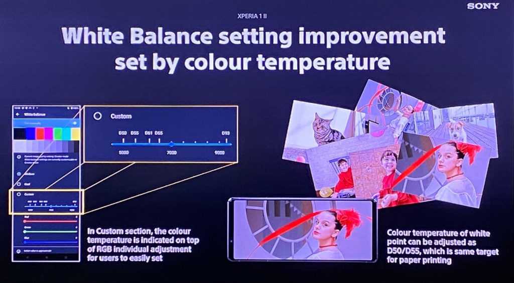 Японский производитель гордится тем, что камера в Xperia 1 II (m2) создана вместе с разработчиками профессиональных камер Alpha 9. Естественно, поддерживается формат RAW. Sony называет Xperia 1m2 первым в мире смартфон с частотой непрерывной съемки до 20 кадров в секунду. Помимо этого, аппарат способен непрерывно рассчитывать автофокус и экспозицию с частотой до 60 раз в минуту. Автофокус, охватывающий 2/3 площади матрицы, и 3D-датчик iToF заняты фокусировкой. Для обработки камеры задействован процессор BIONZ X.