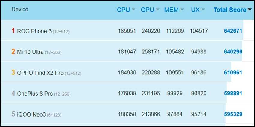 Принцип определения самых мощных смартфонов 2020