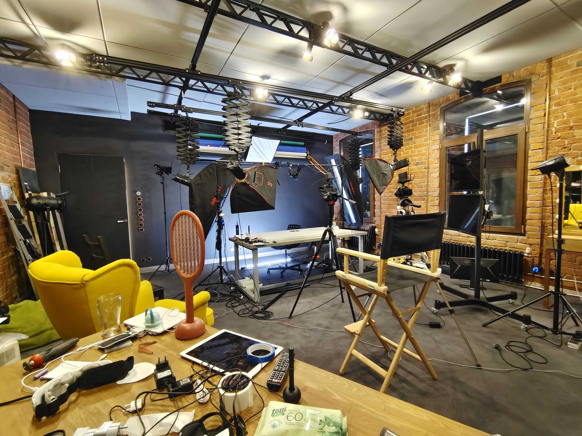 В полутёмном помещении с использованием ночного режима снимки получаются заметно светлее, чем на самом деле. Кажется, что лампы работают во всю силу, но на самом деле в студии царит полумрак. Этот снимок тоже сделан на сверхширик.