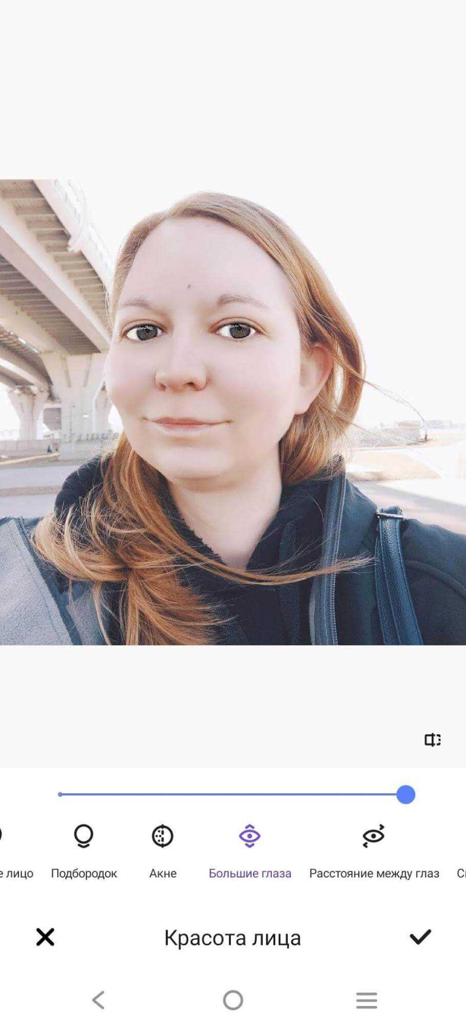 Также в настройках камеры есть встроенный редактор с функцией «Красота лица». Правда, работает он пока довольно криво и улучшить с его помощью внешность на фото вряд ли удастся.