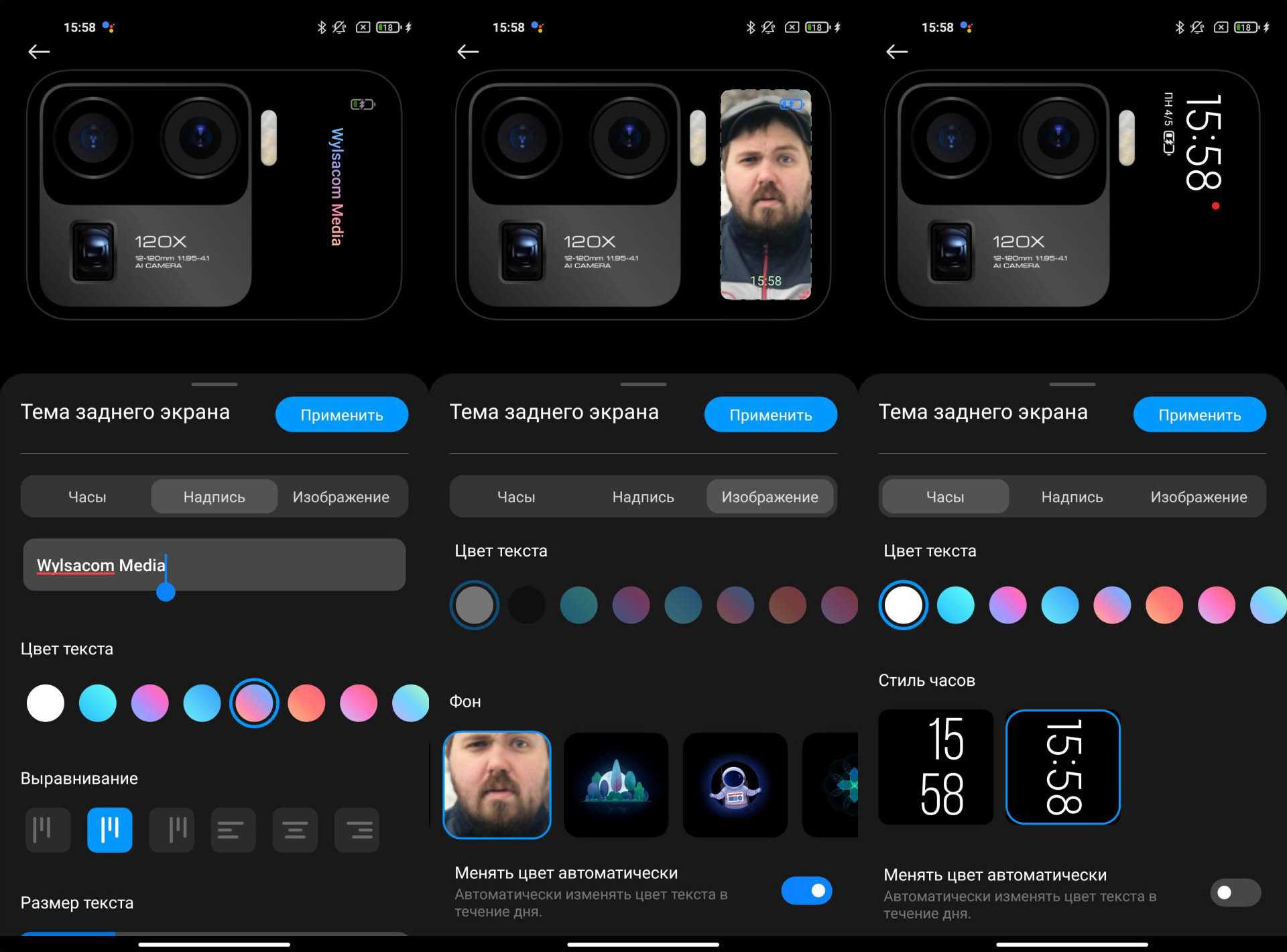 Кроме того, на задней панели Xiaomi Mi 11 Ultra есть дополнительный экран, который довольно ограничен по назначению. Работает как постоянно включенный дисплей, и может быть настроен на отображение времени, даты и уведомлений. Но, самая полезная его функция – дисплей для предварительного просмотра селфи, сделанных с помощью основной камеры.
