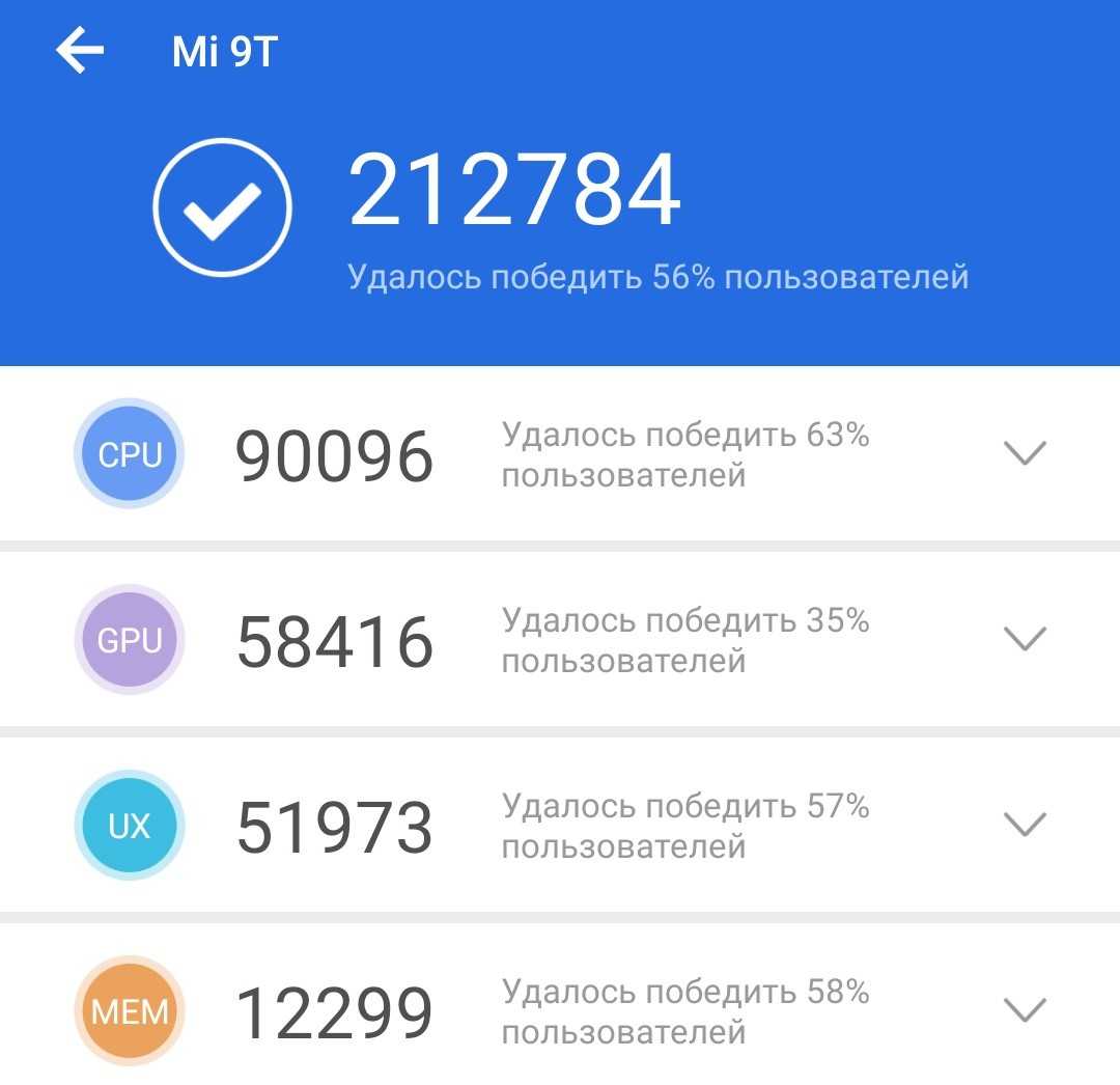 А вот результаты AnTuTu, благо как раз недавно для Xiaomi Mi 9T дали его поддержку: