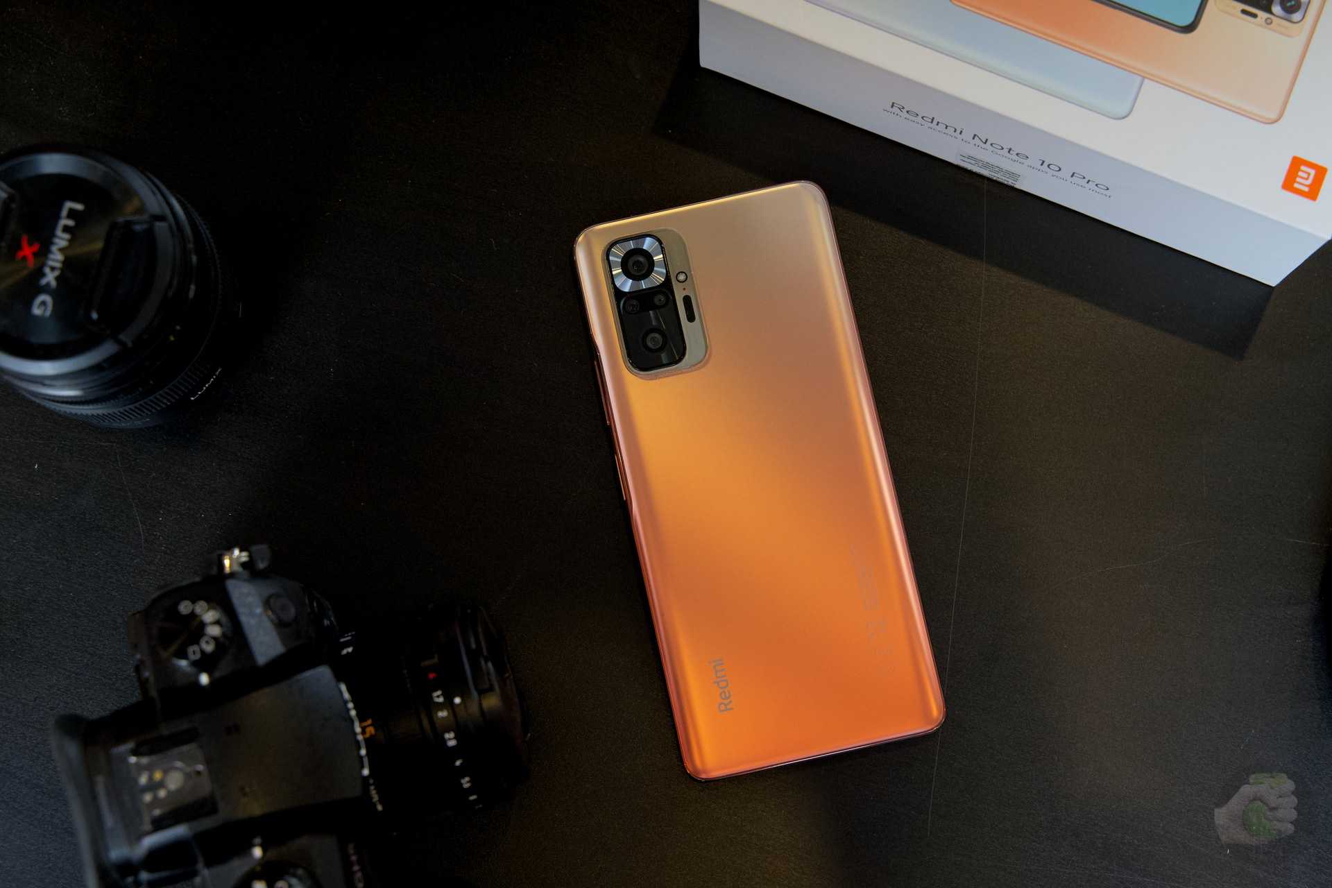 С удовольствием наблюдаю, как меняется дизайн достаточно простых устройств в лучшую сторону. Пусть во внешности телефона и нет революционных изменений, но смотрится Redmi Note 10 Pro привлекательно. Корпус выполнен из стекла Gorilla Glass 5, градиентный окрас красиво переливается. Друзья-биггиковцы раздобыли не скучный серо-чёрный, а нарядный бронзово-оранжевый цвет. Хотя, конечно, в России по традиции именно классическая тёмная версия будет более популярной.