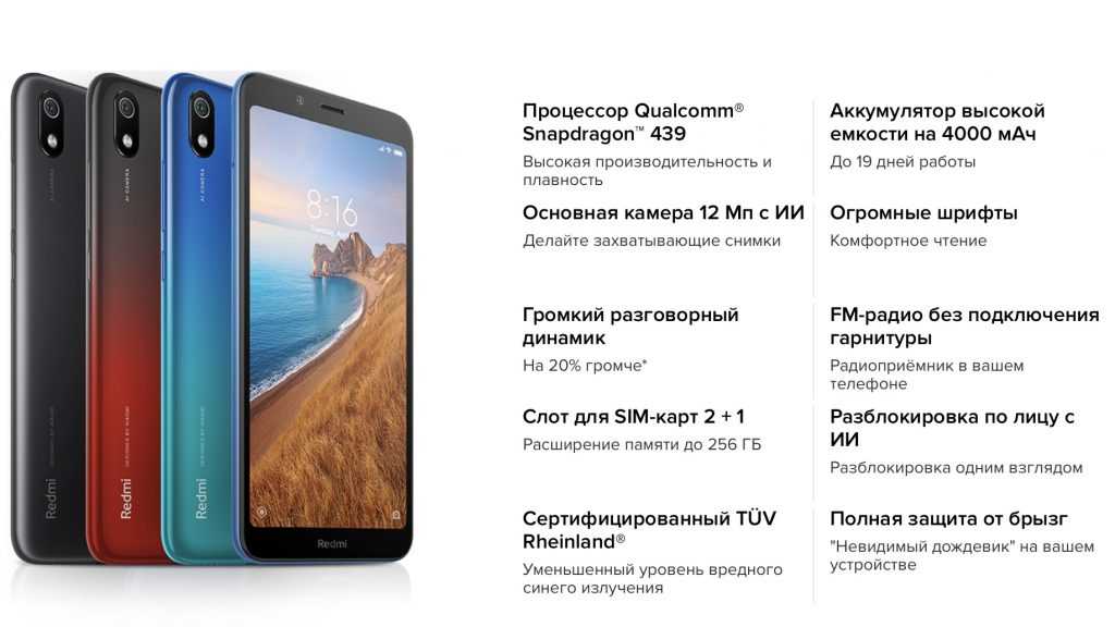 Выше разрешение фронтальной камеры — 8 Мп в Redmi 7 против 5 Мп в Redmi 7A. И последний важный момент — в смартфоне Redmi 7 есть сканер отпечатка пальца; находится датчик на спинке. Все характеристики Redmi 7.