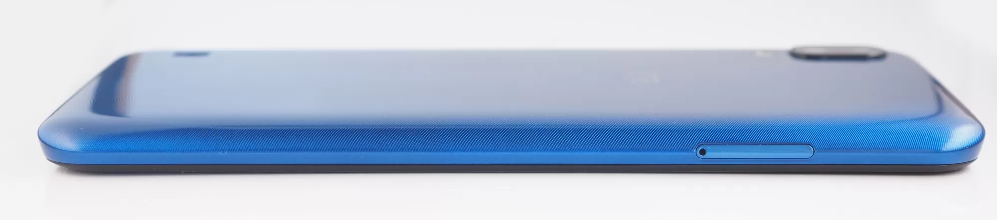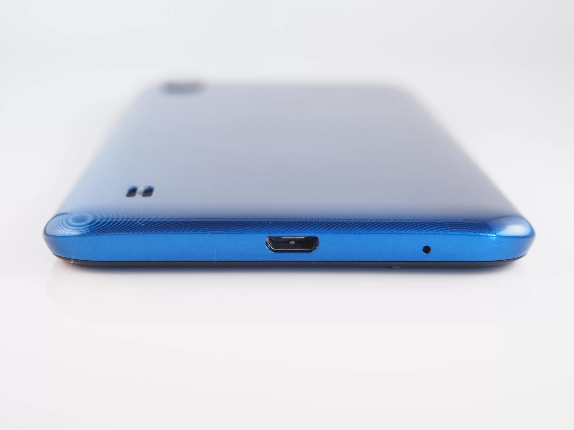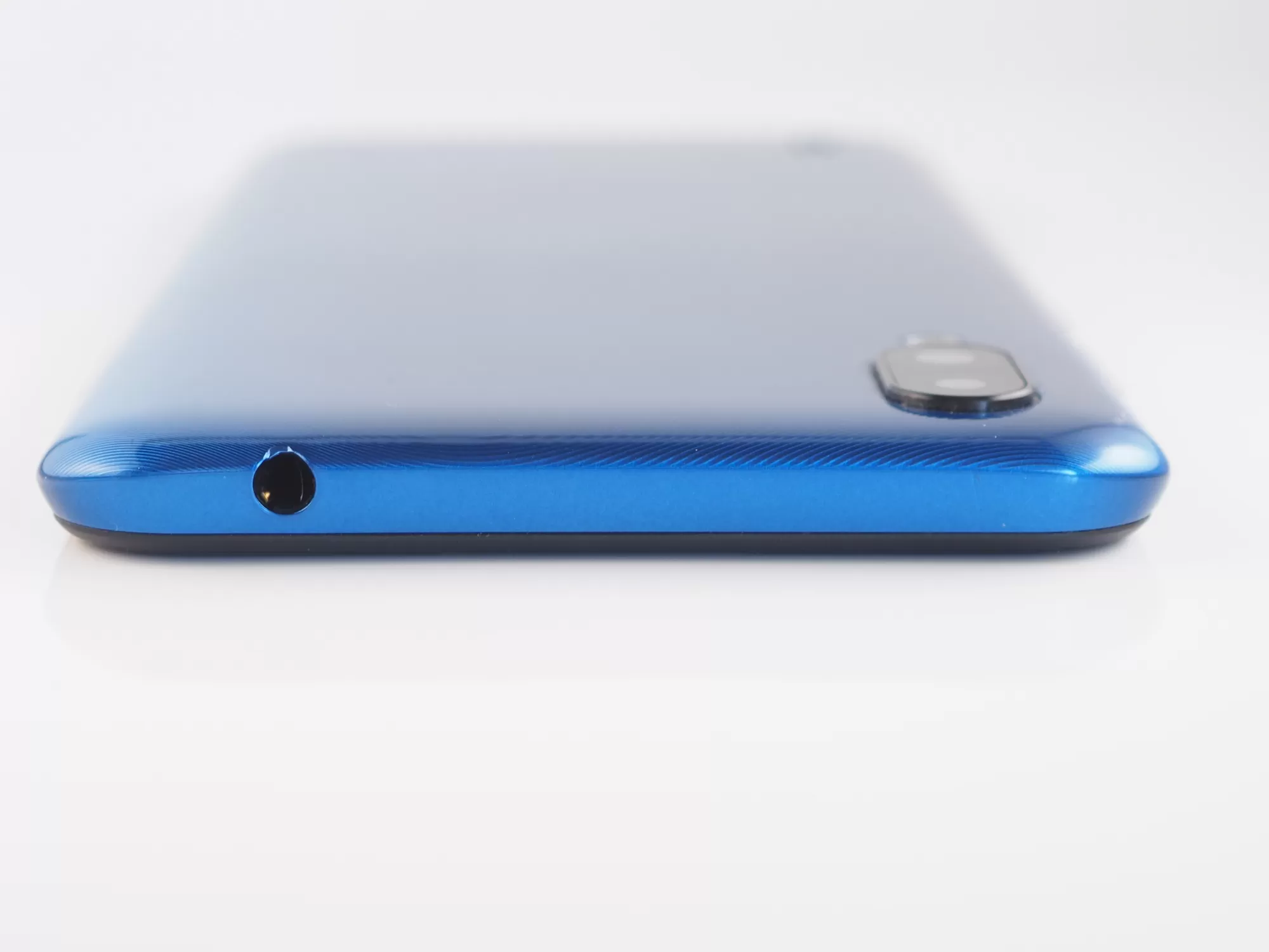 Задняя панель выполнена из глянцевого пластика синего цвета с текстурированным рисунком. Также ZTE Blade A5 2020 доступен в черном и зеленом цвете. На задней панели расположился блок из сдвоенной камеры со вспышкой и прорезь основного динамика. Задняя грань скругленная, за счет чего основной динамик хорошо слышно, даже если смартфон лежит на задней панели. ZTE Blade A5 2020 достаточно компактный смартфон, и он отлично лежит в руке: не выскальзывает и не вызывает трудностей в управлении одной рукой. Но стоит заметить, что пластик задней панели достаточно маркий, и если в синем оттенке отпечатки пальцев на нем не бросаются в глаза, то черный цвет не такой практичный, и на нем любой мусор и следы рук будут отчетливо выражены.