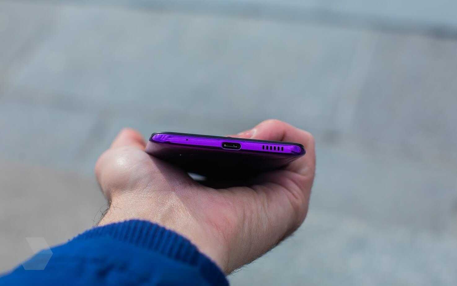 На нижней грани можно видеть прорези динамика для внешних звуков и музыки (справа), отверстие 3,5 мм для наушников и микрофон (слева). По центру можно видеть разъём USB Type C. Он используется для зарядки и подключения к компьютеру.